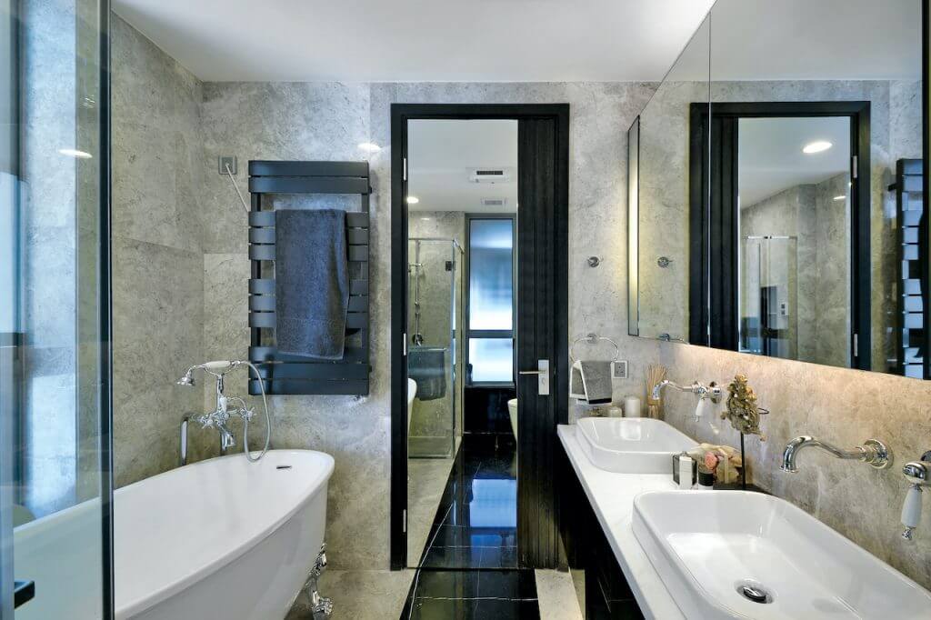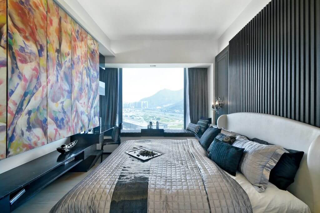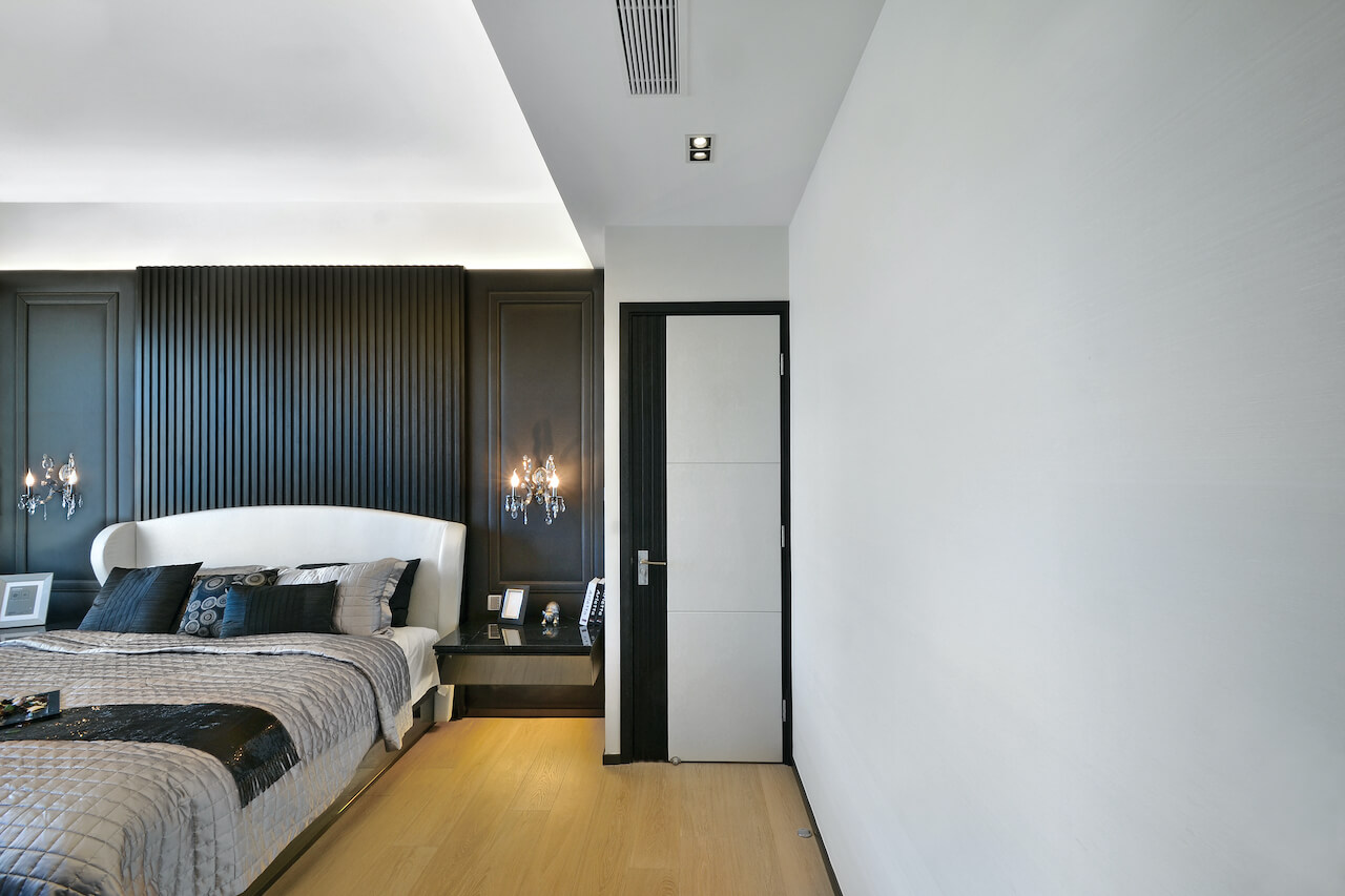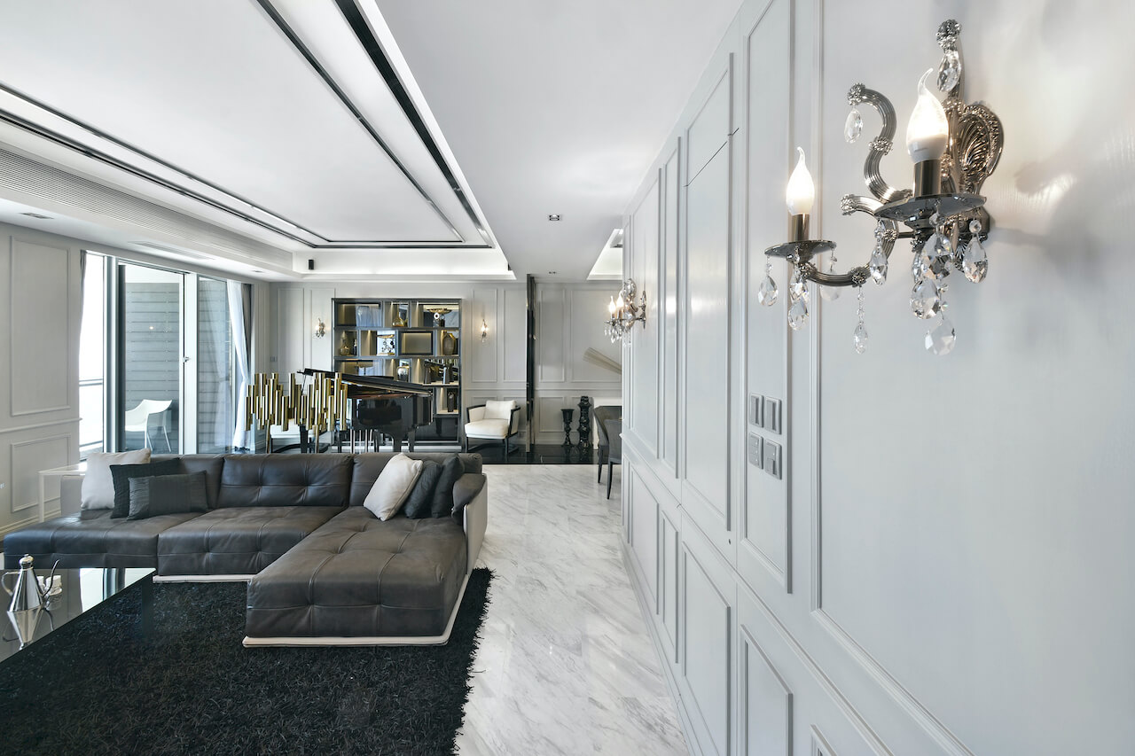 Black and white were used to matching with the stripe pattern to give a sense of space extension. The different layer of the house was built with the glass screen used to locate the different area in the living room.