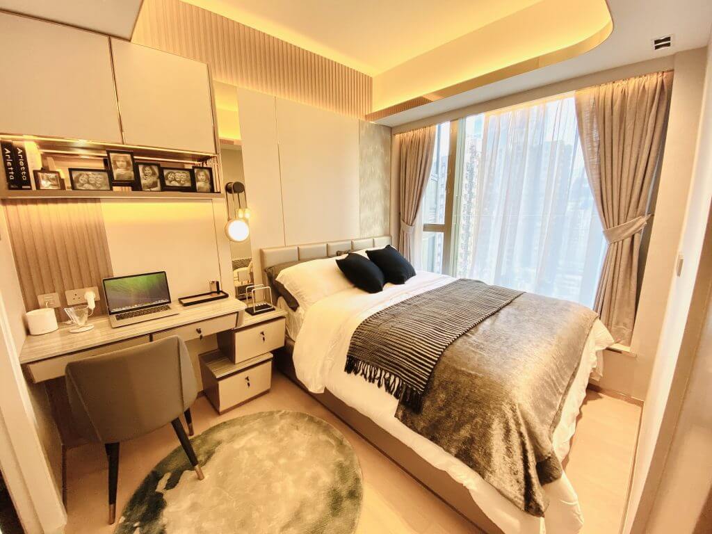 是次項目以現代歐式設計為主,整體以溫馨的淺色調為空間底色,由白色與米黃色系打造溫馨典雅的家居環境及大氣的歐式風情。主次分明的空間格局讓整個單位層次鮮明。客廳內更增設了一個玻璃展示櫃,可以擺放屋主的飾品,也彰顯出屋主別樣的生活品味。