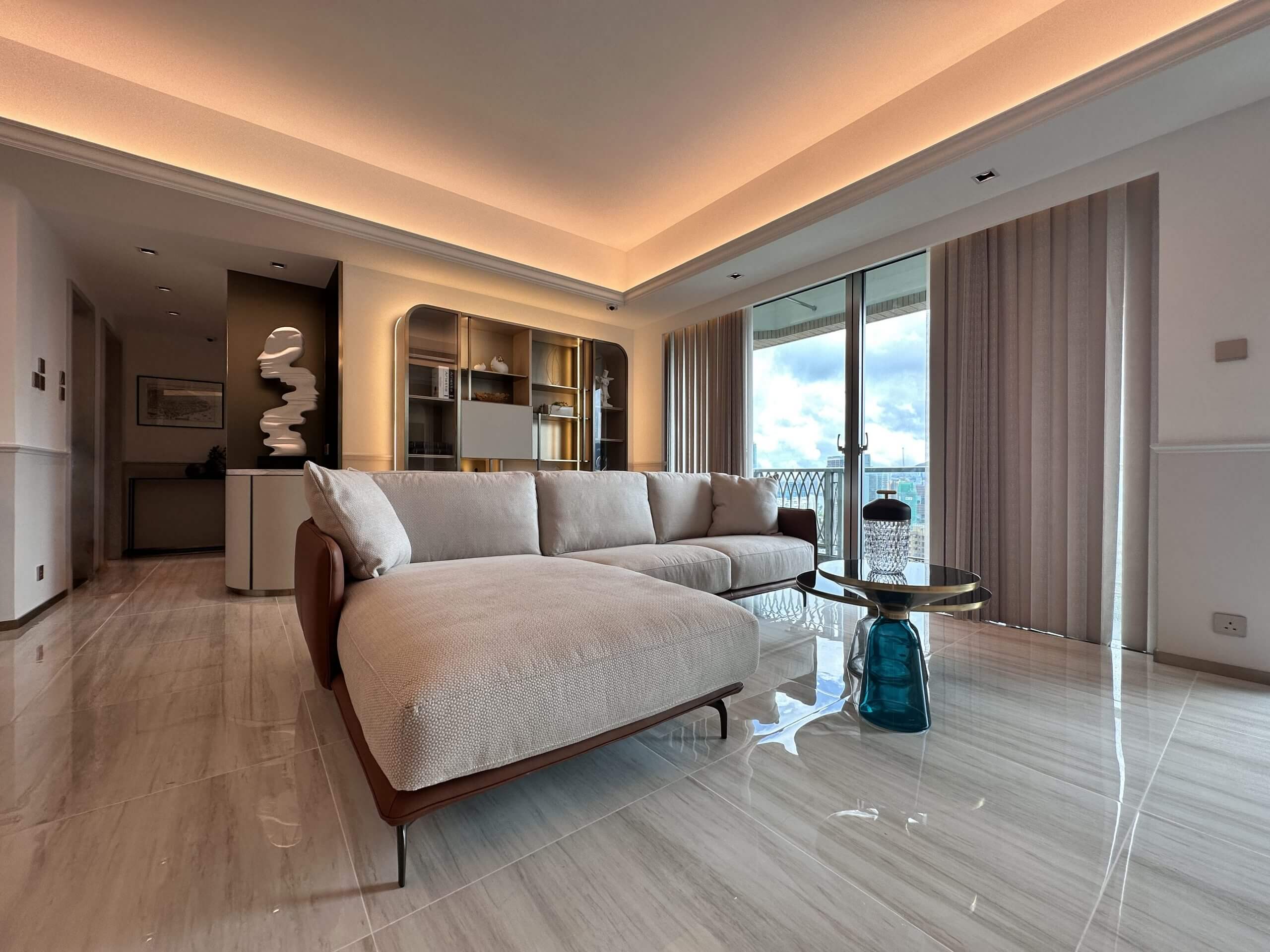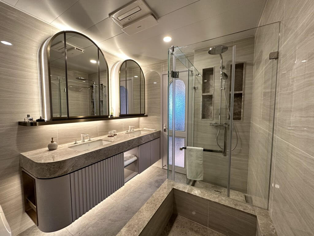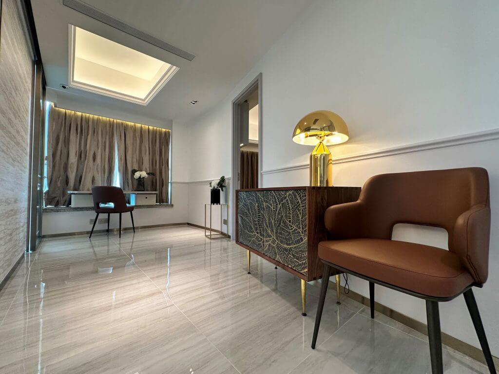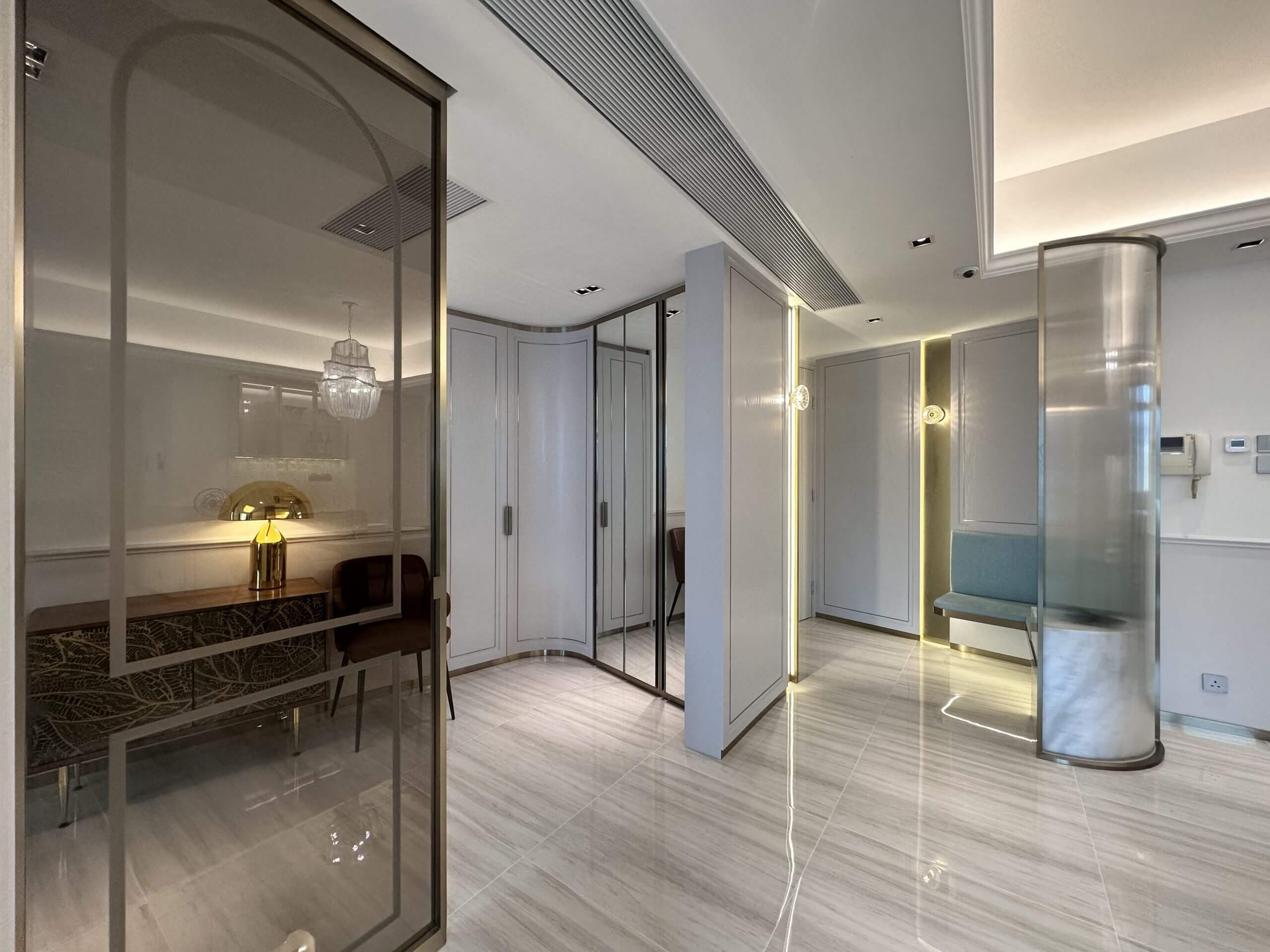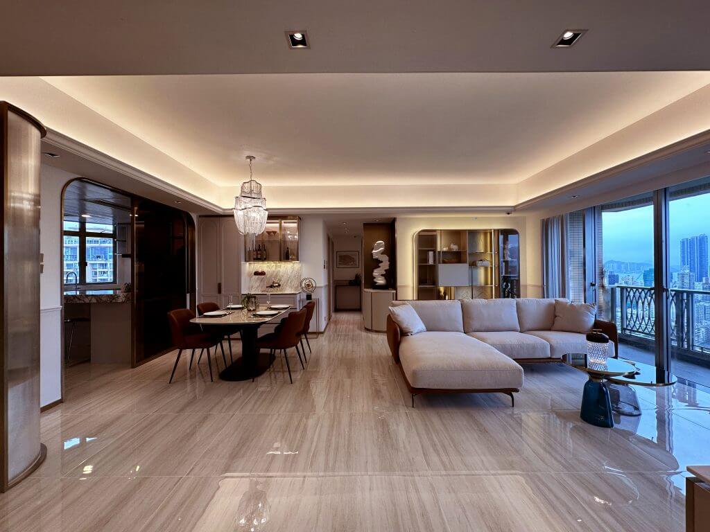 設計運用歐式花線,米白色調,大地色雲石,粗金鋼及不同的水晶燈,帶出 現代經典 古味 時尚韻味。