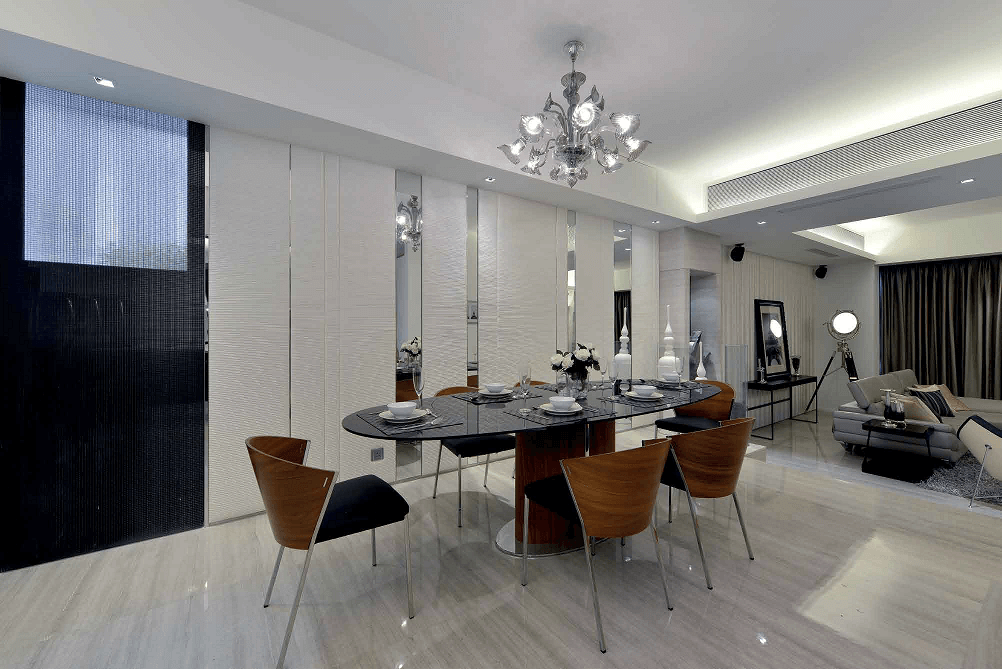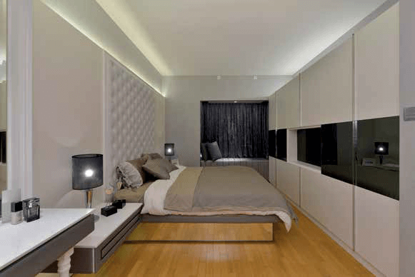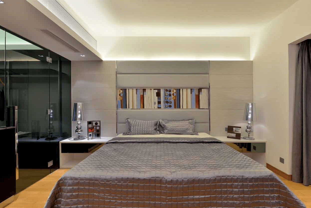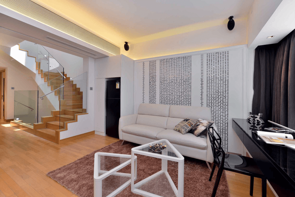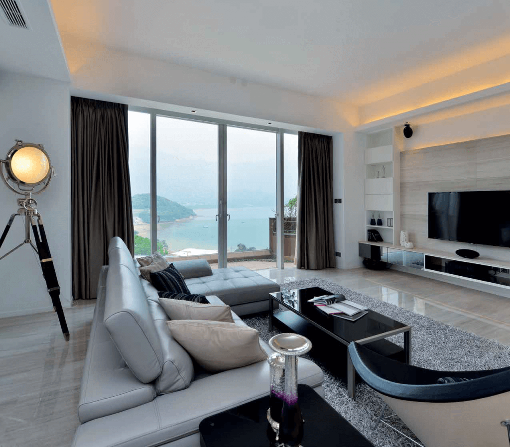 建築師與室內設計師之別?後者角色更能迎合屋主的貼身需要,根據屋主的生活習性重新規劃空間運用,點寸面積用得其所。透過偌大的落地玻璃窗俯瞰開揚景觀,彷彿與客廳連成一體,空間不斷延伸,寬敞舒適;客飯廳以兩級梯級作分隔,原則飯廳略嫌狹窄,設計師跨佔部分客廳空間,將飯廳重新規劃,毗連的廚房牆壁拆掉,改為開放式廚房連吧檯設計,更將通往上層樓梯位置改動,以人為本,打造屬於住客的安樂窩。