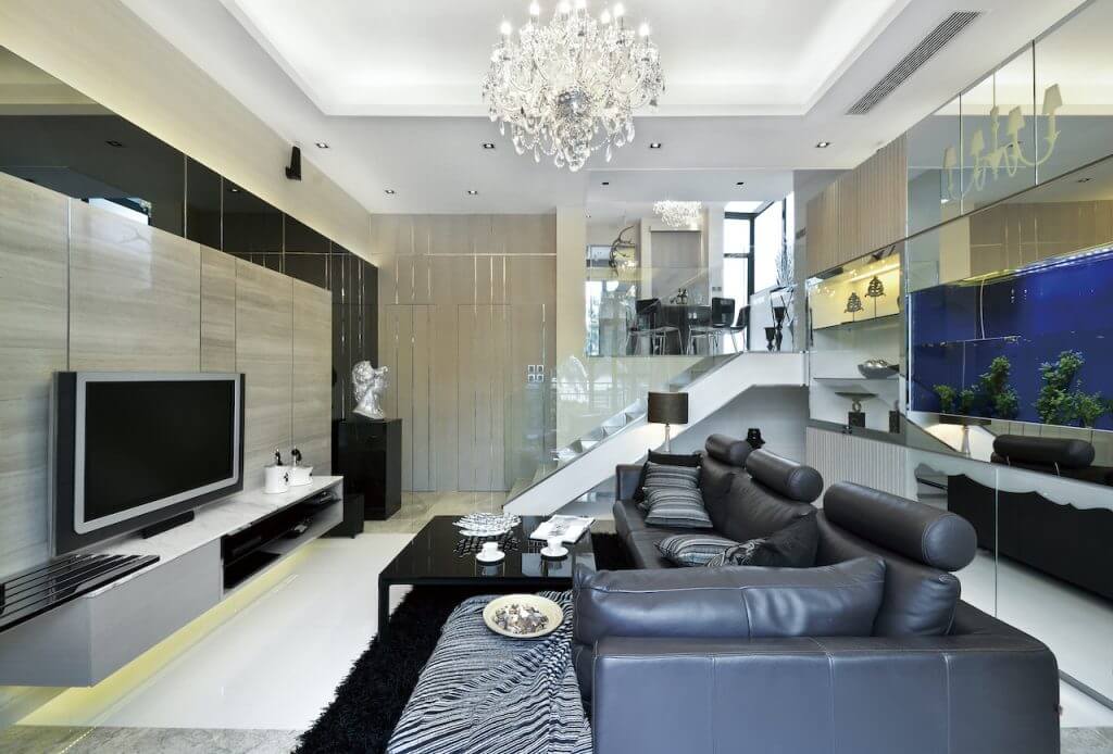 本案交织着各种线条如波浪形玻璃围栏,给三维空间注入视觉动感。再配合华贵精致的材质,呈现一种沉静高雅的意态。